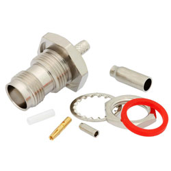 TNC Female Bulkhead Mount Connector Crimp/Solder Attachment for RG188-DS, RG316-DS, .480 inch D Hole