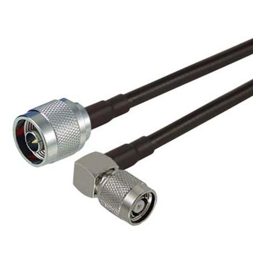 Low Loss Reverse Polarity TNC Jack Right Angle to N Male Cable Assembly using CA-195R Coax, 1 FT