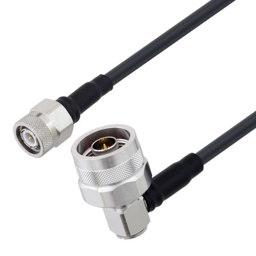 Low Loss TNC Male to N Male Right Angle Cable Assembly using LMR-195-UF Coax, 25 FT With Times Microwave Components with HeatShrink