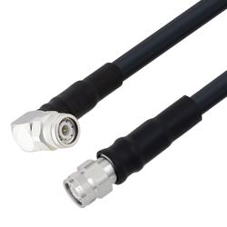 Low Loss TNC Male Right Angle to TNC Male Cable Assembly using LMR-400-UF Coax With Times Microwave Components with HeatShrink