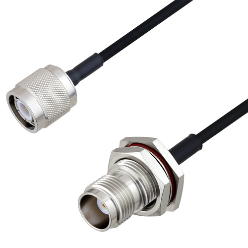 These RF coaxial cable assemblies are built with TNC connection on one end and TNC bulkhead connection on the other. This TNC to TNC cable from L-com has a male to female gender combination. Our TNC male to TNC female coaxial assembly part number LCCA30147-FT5 can also be known as TNC plug to TNC jack cable assembly when using alternate gender names.