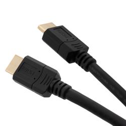 Our push-on HDMI cord from L-com has a male-to-male gender configuration with PVC strain relief materials. This straight-wired HDMI cable can be used with signal extenders to boost the AV signal over longer distances. The HD8K26-20F HDMI high-speed cable supports the most modern displays and interfaces. This round black ultra-high-speed cable comes in a length of 20 feet, which is a longer length for greater signal reach.
