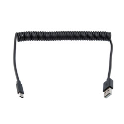 Our USB cable is a coiled cord which can handle a maximum current of 5 Amp and has a DC voltage of 3 Volts. These spiral design, retractile cables are a great alternative to mechanical retractable cables that require a crank or device that adds complexity and cost. Designed to extend and retract without sacrificing electrical performance, these black data cables will fit the most stringent applications such as movable equipment, robotics, factory automation, hand-held devices, space saving, test carts and machine engineering.