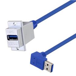 USB 3.0 Type A ECF Type 3 Coupler, Female Type A to Male A 90 degree down 50in