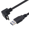 USB 3.0 Right Angle Cable Assembly, 90 Degree Left/Right Type C Male Plug to Straight Type A Male Plug, 32/26AWG, PVC, Black, 1.0M