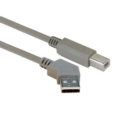 45 Degree USB Cable, 45 Degree Left Angle A Male / Straight B Male, 3.0 m