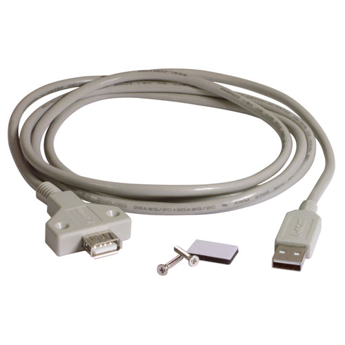 Trying to connect your USB cable to that hard to access port on the back of your PC? Try this convenient cable and make this problem go away! Featuring a USB A type plug for the PC connection and a unique USB A type jack, the user can mount this jack to any surface with either screws or double sided adhesive foam tape (both are provided). Twisted pair data lines help reduce crosstalk while 20 AWG power conductors enable maximum power transfer from host to peripheral. Cable length is 2 meters (6.6 feet), color is light gray. Custom lengths are available with modest minimum requirements.