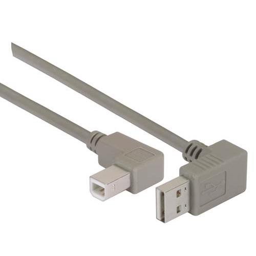 Right Angle USB Cable, Down Angle A Male/ Right Angle B Male, 0.3m