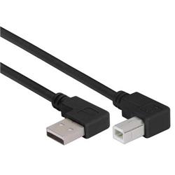 Right Angle USB Cable, Left Angle A Male/Left Angle B Male Black, 2.0m