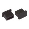 USB cable assembly male connector dust covers are available in a package of 10. They are black in color and are compatible with most standard USB male connectors.