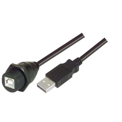 • Waterproof panel mount USB B female to standard USB A male connectors, revision 2.0 compliant