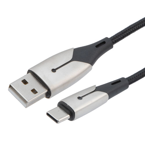 USB 2.0 AM TO CM Cable with black cotton braid, Blue LED light, 3M