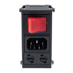 Vertical Power Entry Module, C14 Inlet, a Pair of FX0359 fuse Holders, Double Contact Illuminated Red Switch, 78.7 mm