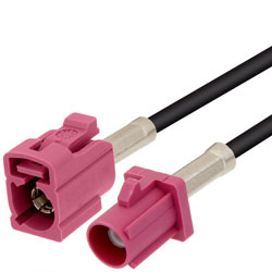 Violet FAKRA Plug to FAKRA Jack Cable Assembly using RG174 Coax, 1 FT