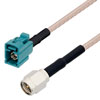 Water Blue FAKRA Jack to SMA Male Cable Assembly using RG-316 Coax, 6 FT with HeatShrink