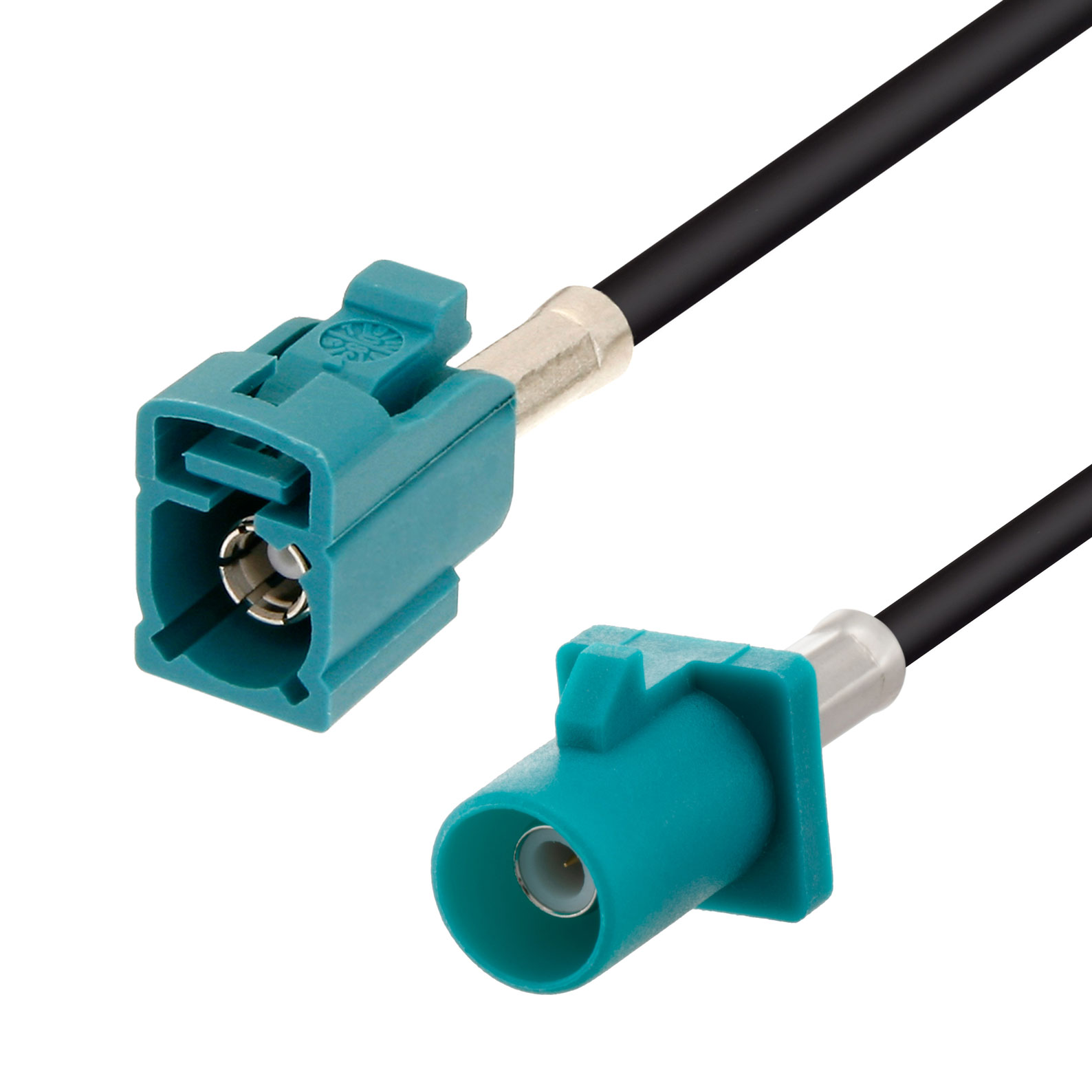 Water Blue FAKRA Plug to FAKRA Jack Cable Assembly using RG174 Coax, 3 FT