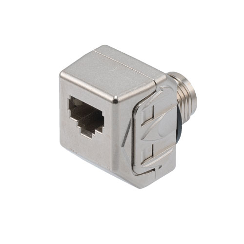 The M12 X-code female to RJ45 female panel mountable metal panel Ethernet adapter M12XFP-RJ45F from L-Com is in stock and ready on the same day of your order. The M12XFP-RJ45F has a metal panel mountable RJ45 Ethernet adapter that comes with M12 X-code female to RJ45 female connectors. The Category 6a RJ45 adapter can be used as a mount in an M12 application and keep the waterproof M12 on one side and the standard network RJ45 cables on the other, non-waterproof side. These M12 X-code female to RJ45 female Right-angle adapters are available in the color silver.