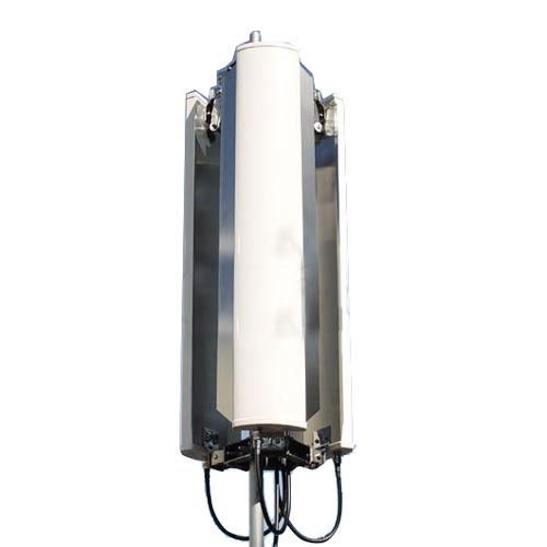 Ideal for smaller applications, this sectorized omni array is available as a single fed system (1 input into 3 antennas). Since each antenna is fed from a 3-Way signal splitter, only a single radio/amplifier is required. As the system grows, additional capacity can be added by simple adding more base station radios and bypassing the splitter's array, thus feeding each antenna from a separate radio.