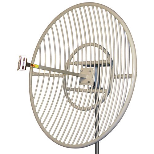 The HyperLink High Performance Parabolic Grid WiFi Antenna provides 30 dBi gain with a 5.3° beam-width for highly directional long range applications. Additional applications include point to point systems, point to multi-point and wireless bridges in the 2.4GHz ISM band as well as IEEE 802.11b/g/n wireless LAN systems. External interference of this antenna is minimized due to the excellent front to back ratio. This antenna comes with a 18" coax lead terminated with an N-Female connector.