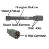 The RE04U features sealed collinear brass elements inside a durable UV-stable machine gray fiberglass radome. A vented end cap and drain holes in the base help prevent moisture build-up inside the antenna. These features allow the RE04U to be mounted in up or down positions.